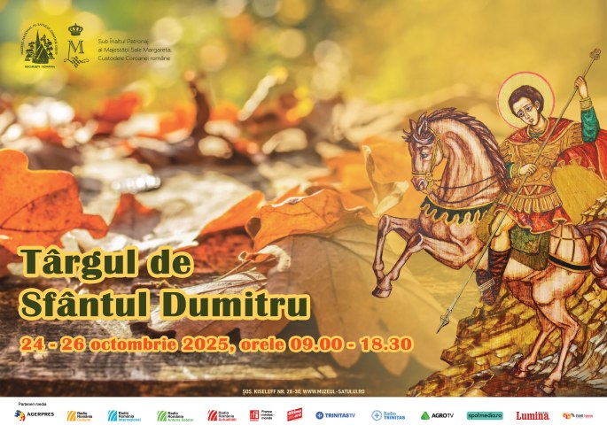 Muzeul Naţional al Satului „Dimitrie Gusti” vă invită în perioada 24 octombrie – 26 octombrie 2025, la manifestările dedicate sărbătoririi Sfântului Dumitru, protectorul spiritual al muzeului, prilej de comemorare a profesorului Dimitrie Gusti, mentorul muzeului. Prăznuirea Sfântului Dumitru marchează ultima şi cea mai însemnată sărbătoare a toamnei, care, conform calendarului pastoral, reprezintă începutul iernii. În … Continuă să citești Târgul de Sfântul Dumitru 2025